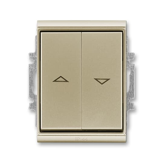 Ovládač žaluziový jednopólový (1/0+1/0 s blokováním), IP44; šampaňská   Vhodné pro designy z vypínačových řad ABB : F   Objednací číslo : 3558E-A88943 33