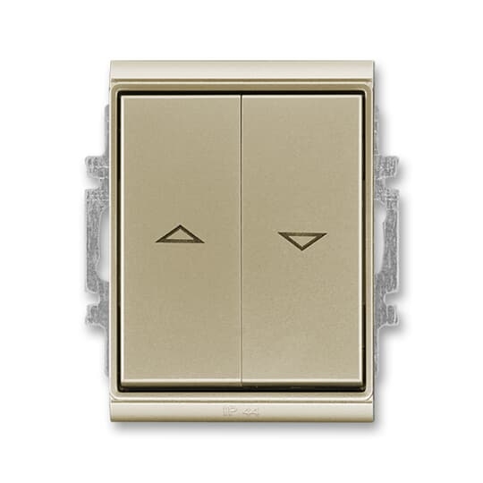 Ovládač žaluziový jednopólový (1/0+1/0 s blokováním), IP44; šampaňská Vhodné pro designy z vypínačových řad ABB : F Objednací číslo : 3558E-A88943 33