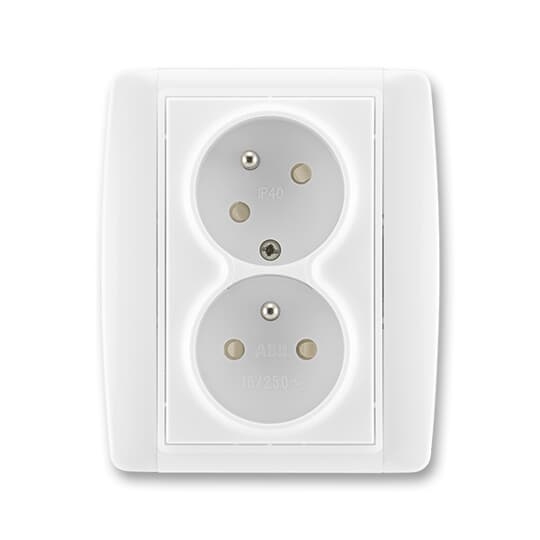 Zásuvka dvojnásobná chráněná s clonkami, bezšroub. svorky; bílá/bílá Vhodné pro designy z vypínačových řad ABB : E Objednací číslo : 5513E-C02357 03