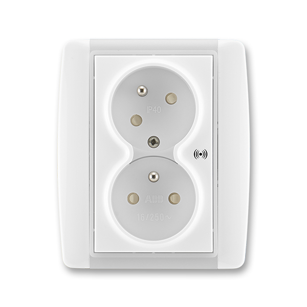 Element® 5583E-C02357 01 zásuvka 2násobná s natoč. dutinou, s přep. ochr., s akustickou sig.barva bílá / ledová bílá ABB