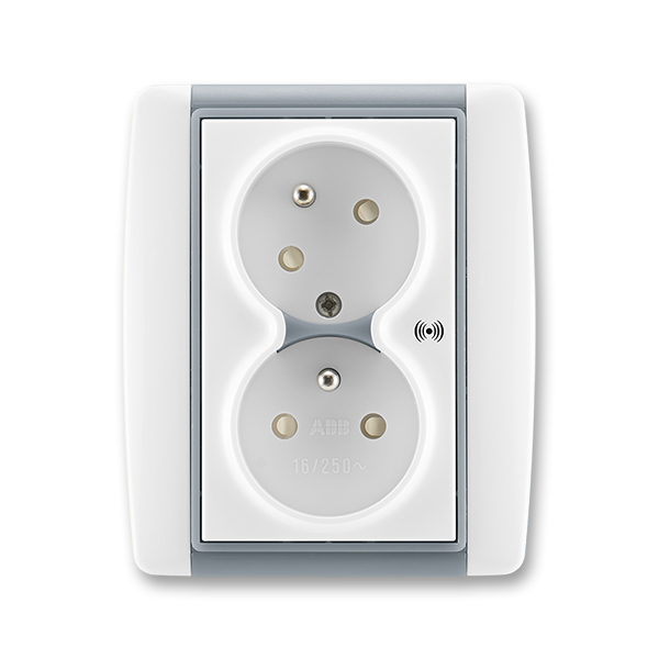 Element® 5583E-C02357 04 zásuvka dvojnásobná s natoč. dutinou, s přep. ochr., s akustickou sig.barva bílá / ledová šedá ABB