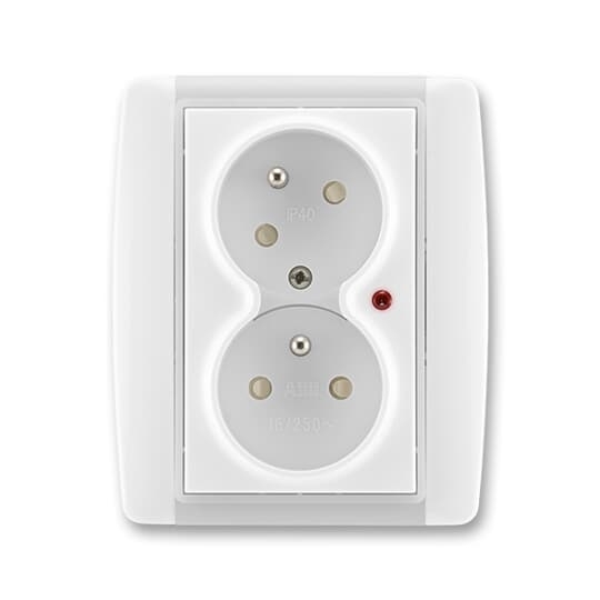 Element® 5593E-C02357 01 zásuvka dvojnásobná s natoč. dutinou, s přep. ochr., s optickou sig.barva bílá / ledová bílá ABB