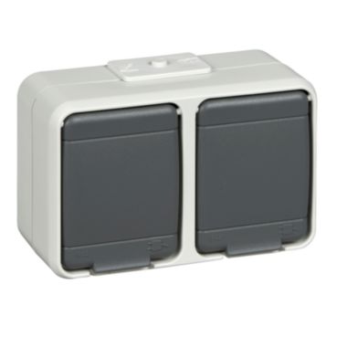 ELSO Aqua-Top - zásuvka SCHUKO dvojitá horizontální, 250V, 16A, IP44, světle šedá *455409 Schneider