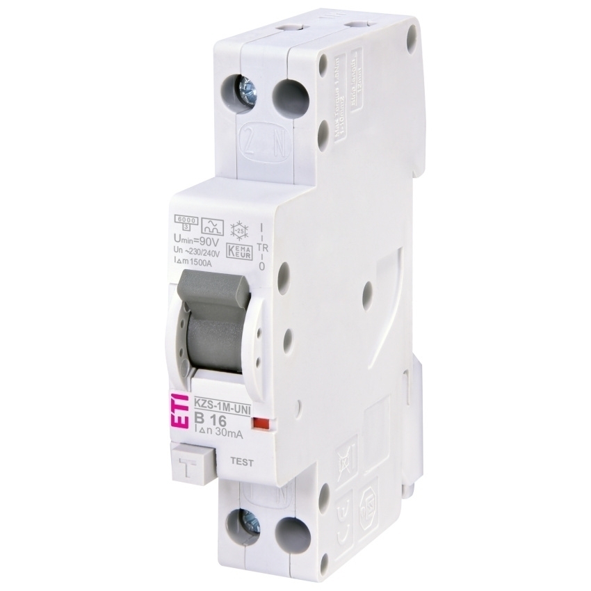 ETI KZS-1M UNI 1p+N A B16/0.03 6kA *002176024 Kombinovaný chránič 1p+N, 1M, typ A, char. B, I?n = 30mA, Icn = 6kA, In = 16A, Un =