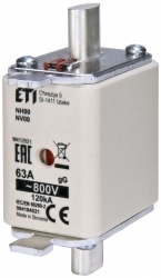 ETI NH00 gG 20A/800V *004184515 Nožová pojistková vložka NH00 gG 20A/800V, velikost NH00, charakteristika gG, In = 20A, Icn = 120k