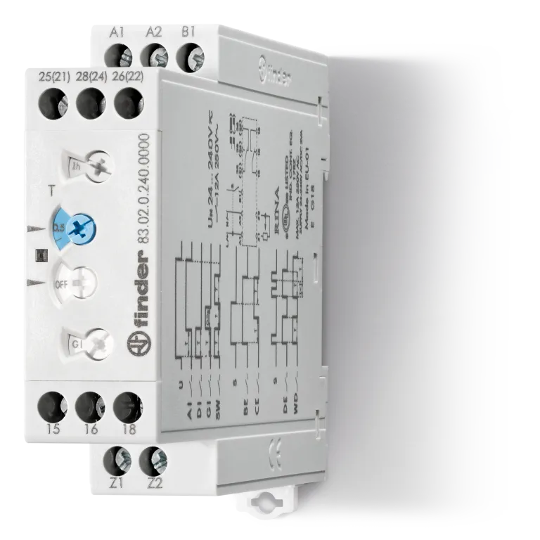 Finder 83.02.0.240.0000 Čas.relé, MF, 2P/12A, univ.nap., 50ms-10d
