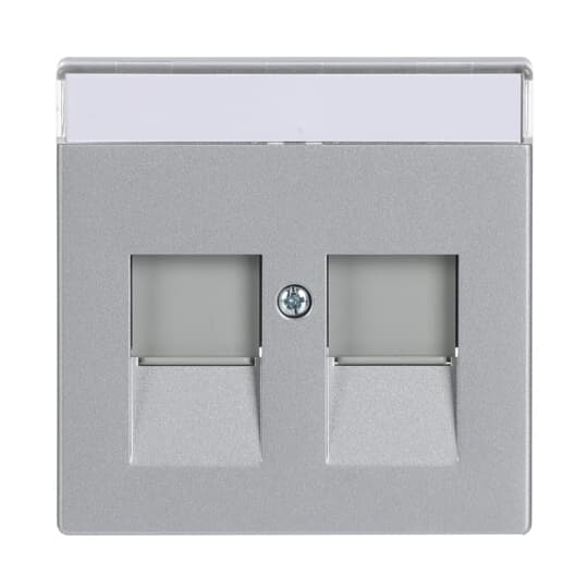 Kryt zásuvky komunikační, s krycími clonkami (pro 2 zásuvky); hliníková stříbrná; 1800-83   Vhodné pro designy z vypínačových řad ABB : Fu,Ax   Objednací číslo : 2CKA001710A3676