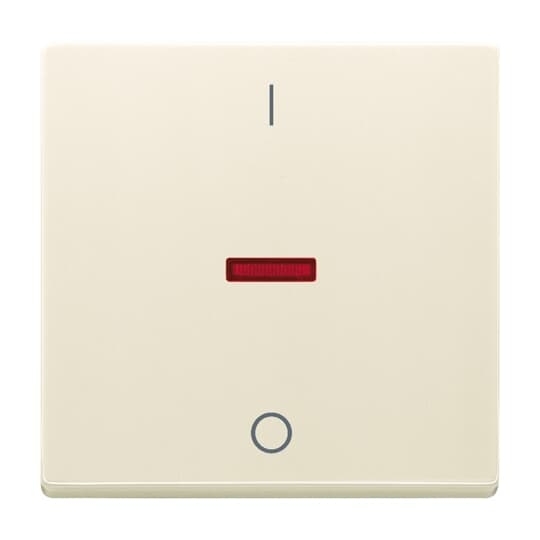 Kryt spínače jednoduchý, s potiskem I/0, s červeným průzorem; slonová kost; 1788-82   Vhodné pro designy z vypínačových řad ABB : Fu,S   Objednací číslo : 2CKA001751A2742