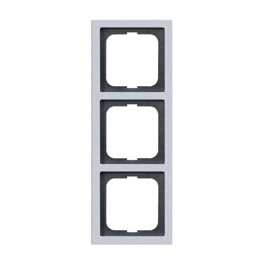 Rámeček trojnásobný, pro vodorovnou i svislou montáž; hliníková stříbrná; 1723-183K   Vhodné pro designy z vypínačových řad ABB : Fu   Objednací číslo : 2CKA001754A4308