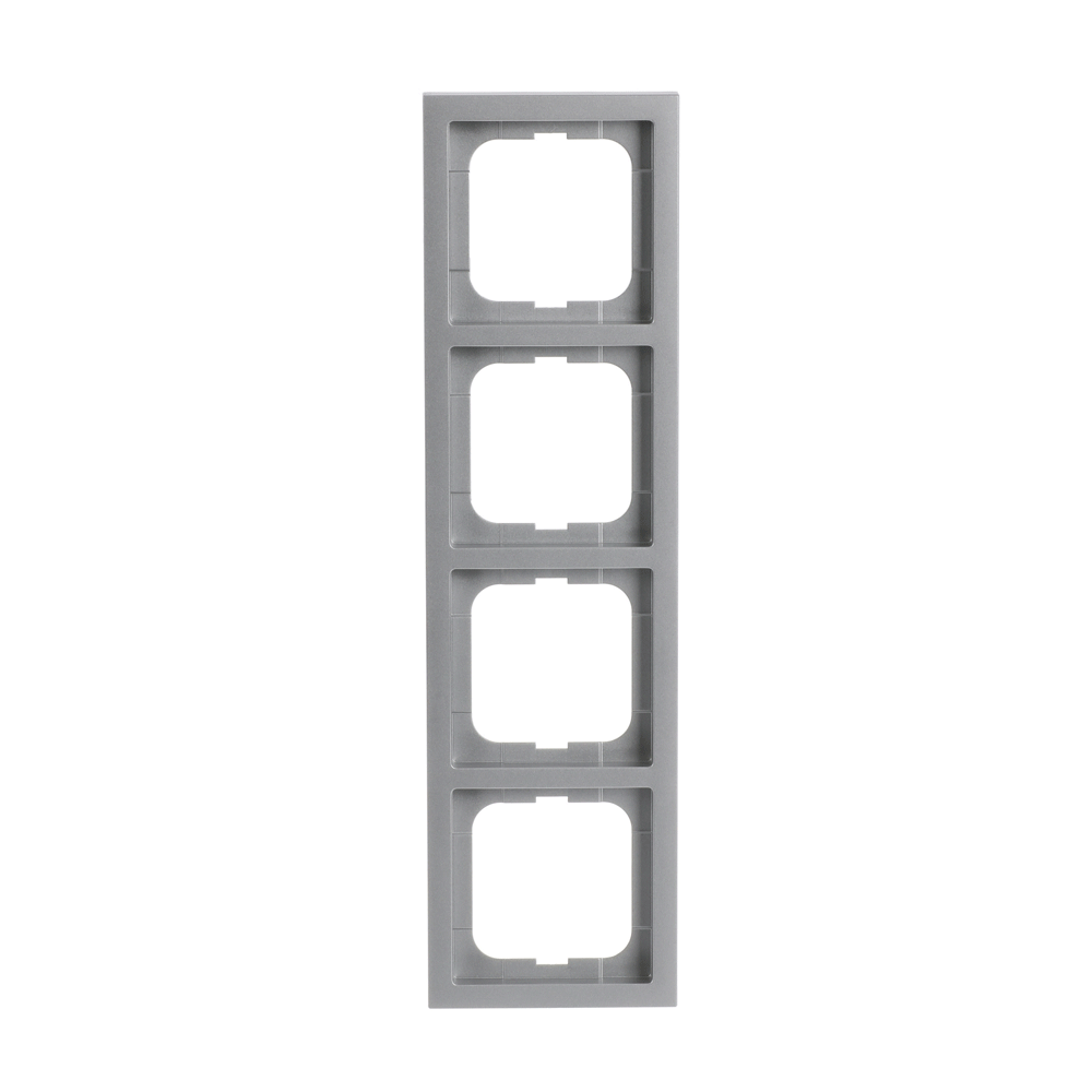 Rámeček čtyřnásobný, pro vodorovnou i svislou montáž; hliníková stříbrná; 1724-183K Vhodné pro designy z vypínačových řad ABB : Fu Objednací číslo : 2CKA001754A4309