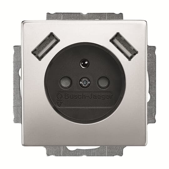 Zásuvka 1násobná s kolíkem, s clonkami, s nabíjením 2x USB; ušlechtilá ocel; 20 MUCB2USB-866-500 Vhodné pro designy z vypínačových řad ABB : Fu Objednací číslo : 2CKA002017A1897
