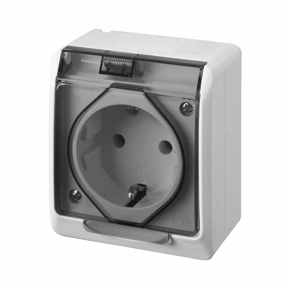 GALATEA *5324-01 IP44 Zásuvka 2P+PE SCHUKO (bílá / kolébka průhledná).