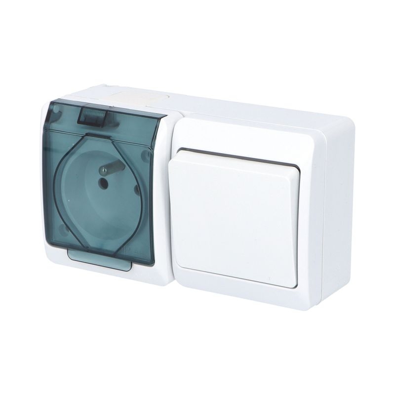 GALATEA *5327-11 IP44 Přepínač střídavý č.6 + zásuvka 2P+PE (bílá / průhledné víčko).