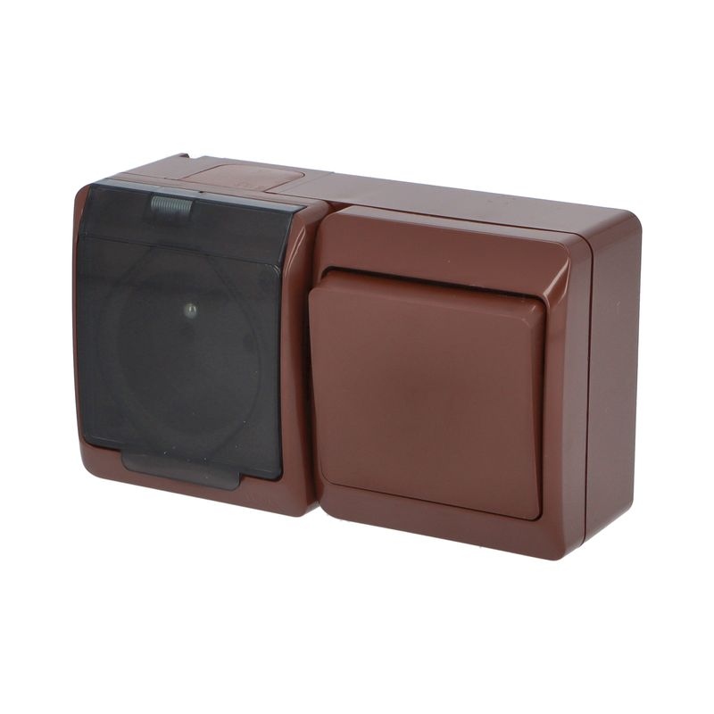 GALATEA 5327-19 IP44 Přepínač střídavý č.6 + zásuvka 2P+PE (hnědá / průhledné víčko).