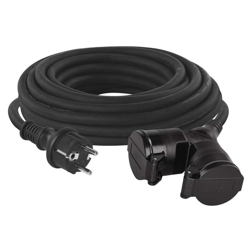 Venkovní prodlužovací kabel 10 m / 2 zásuvky / černý / guma / 230 V / 1,5 mm2 == barva kabelu: černá|další funkce: ne|délka: 10 m|dětské clonky: ano|hmotnost: neuvádí se|krytí: IP44|max. zatížení navinutého: neuvádí se|napětí: 230 V~|počet zásuvek: 2|prodejní obal: 1 ks, sáček|produkt: prodlužovací přívod – spojka|proud: 16 A|průřez vodiče: 1,5 mm?|rozměr: neuvádí se|tepelná pojistka: ne|typ izolace: guma|vodič: H05RR-F3G|záruční doba: 2 roky|zatížení rozvinutého: 16 A max./3 680 W