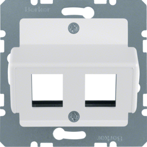 Hager 14631909 Centrální díl pro 2x RJ45 AMP,cat.3, cat.5, cat.5e and cat.6 pro AMP optické spojky MT-RJ konektory 30° šikmý vývod, bílá, mat/sametová