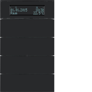 Hager 75664592 Senzor, tlačítkový, 4-násobné s pokoj. termostatem a displejem, B.IQ, sklo, černá