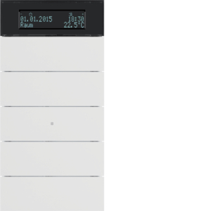 Hager 75665599 Senzor, tlačítkový, 5-násobné s pokoj. termostatem a displejem, B.IQ, bílá, mat
