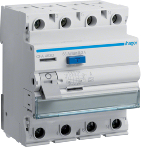 Hager CFA463D Proudový chránič 4 pól. 63A / 0,3 A, typ A, 6 kA