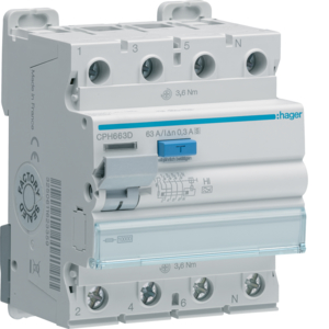 Hager CPH663D Proudový chránič 4 pól. 63A / 0,3 A, typ A/S/HI, 10 kA