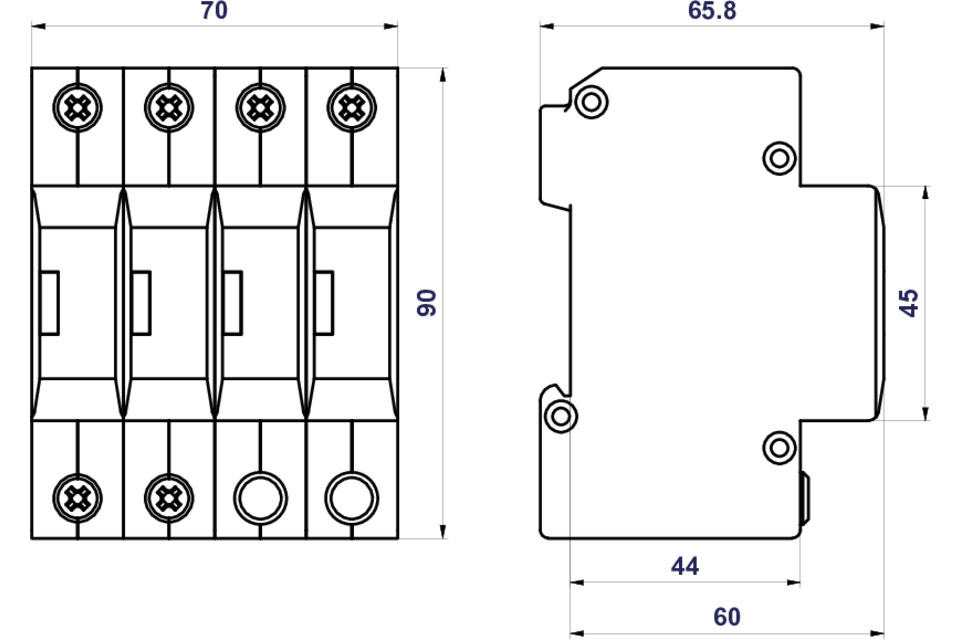 Svodiče impulzních proudů a rázového přepětí typu T1+T2 pro fotovoltaické (PV) systémy v U nebo Y zapojení. Výhodou zapojení Y oproti U je odolnost vůči zemnímu spojení pracovních vodičů a nulový reziduální (svodový) proud vodičem PE. Jednotlivé varistorové sekce zapojené mezi svorky L+, L- a PE jsou opatřeny interními odpojovači, které jsou aktivovány při poruše (přehřátí) varistorů. Tyto výrobky je nutné předjistit vnějším odpojovačem určeným pro PV aplikace. Instalují se na DC straně v PV aplikacích s vnějším LPS, kde není dodržena dostatečná vzdálenost „s“. Jsou vhodné pro hladinu LPL I nebo II. Zajišťují vyrovnávání potenciálů plusových a mínusových sběrnic PV systémů a likvidaci transientních přepětí vznikajících při atmosférických výbojích (včetně přímého úderu blesku do PV systému) nebo spínacích procesech. Označení S specifikuje provedení s dálkovou signalizací. Instaluje se dle norem: ČSN EN 62305 ed. 2, IEC 61643-32:2017, ČSN CLC/TS 50539-12, ČSN 33 2000-7-712 ed. 2.