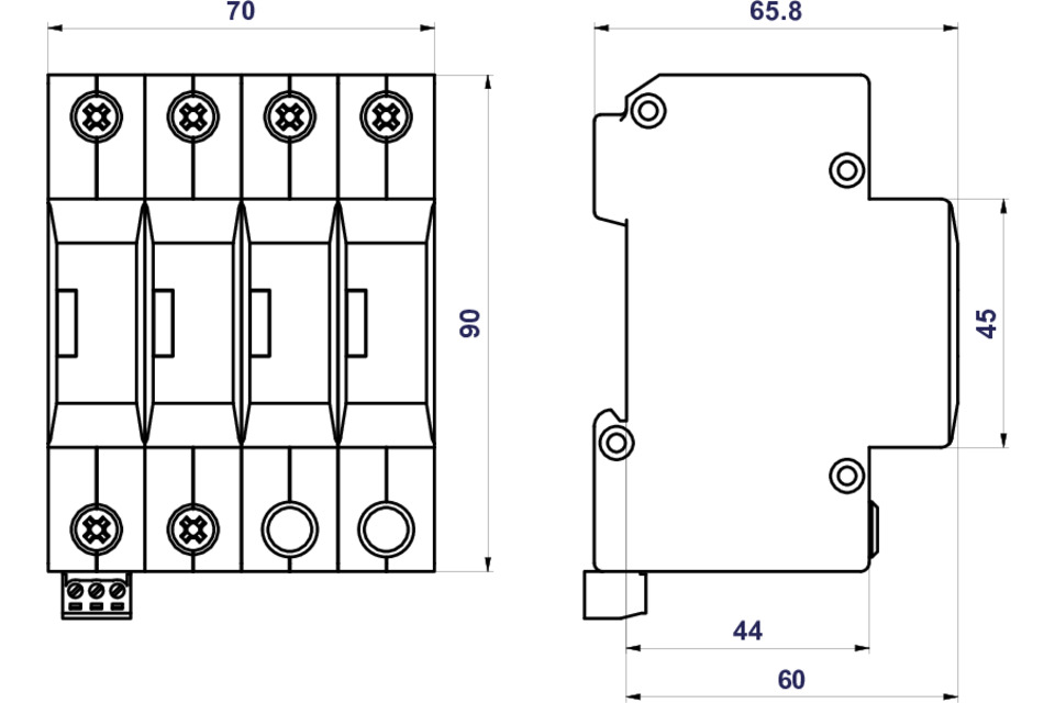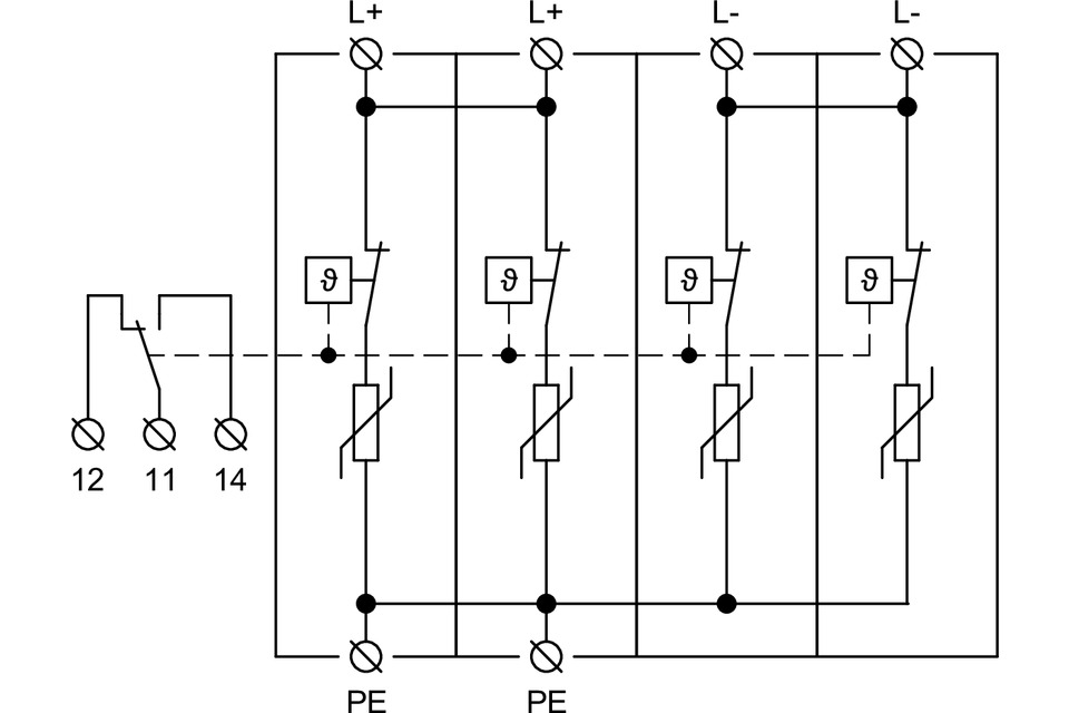 Svodiče impulzních proudů a rázového přepětí typu T1+T2 pro fotovoltaické (PV) systémy v U nebo Y zapojení. Výhodou zapojení Y oproti U je odolnost vůči zemnímu spojení pracovních vodičů a nulový reziduální (svodový) proud vodičem PE. Jednotlivé varistorové sekce zapojené mezi svorky L+, L- a PE jsou opatřeny interními odpojovači, které jsou aktivovány při poruše (přehřátí) varistorů. Tyto výrobky je nutné předjistit vnějším odpojovačem určeným pro PV aplikace. Instalují se na DC straně v PV aplikacích s vnějším LPS, kde není dodržena dostatečná vzdálenost „s“. Jsou vhodné pro hladinu LPL I nebo II. Zajišťují vyrovnávání potenciálů plusových a mínusových sběrnic PV systémů a likvidaci transientních přepětí vznikajících při atmosférických výbojích (včetně přímého úderu blesku do PV systému) nebo spínacích procesech. Označení S specifikuje provedení s dálkovou signalizací. Instaluje se dle norem: ČSN EN 62305 ed. 2, IEC 61643-32:2017, ČSN CLC/TS 50539-12, ČSN 33 2000-7-712 ed. 2.