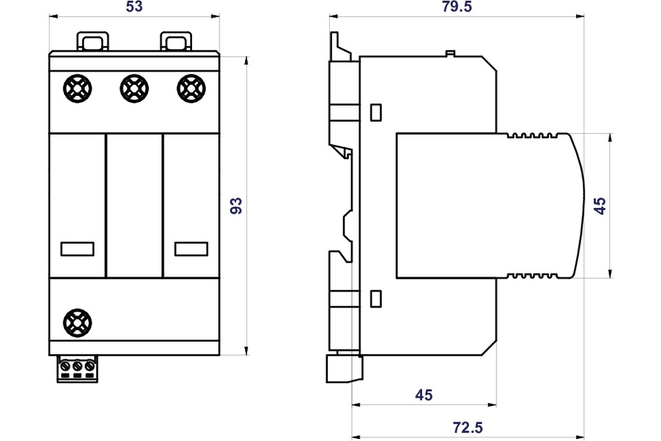 Svodiče impulzních proudů a rázového přepětí typu T1+T2 pro fotovoltaické (PV) systémy v U nebo Y zapojení. Výhodou zapojení Y oproti U je odolnost vůči zemnímu spojení pracovních vodičů a nulový reziduální (svodový) proud vodičem PE. Jednotlivé varistorové sekce zapojené mezi svorky L+, L- a PE jsou opatřeny interními odpojovači, které jsou aktivovány při poruše (přehřátí) varistorů a jsou schopny přerušit DC proud. Speciální konstrukce vnitřního odpojovače dovoluje instalaci bez předřazeného předjištění. Instalují se na DC straně v PV aplikacích s vnějším LPS, kde není dodržena dostatečná vzdálenost „s“. Jsou vhodné pro hladinu LPL III nebo IV. Zajišťují vyrovnávání potenciálů plusových a mínusových sběrnic PV systémů a likvidaci transientních přepětí vznikajících při atmosférických výbojích (včetně přímého úderu blesku do PV systému) nebo spínacích procesech. Označení M specifikuje konstrukční provedení s výměnným modulem. Označení S specifikuje provedení s dálkovou signalizací. Instaluje se dle norem: ČSN EN 62305 ed. 2, IEC 61643-32:2017, ČSN CLC/TS 50539-12, ČSN 33 2000-7-712 ed. 2.
