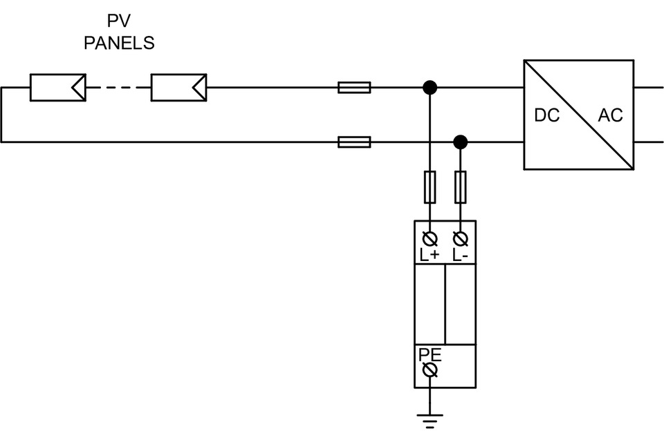 Svodiče rázového přepětí typu T2 pro fotovoltaické (PV) systémy v U nebo Y zapojení. Výhodou zapojení Y oproti U je odolnost vůči zemnímu spojení pracovních vodičů a nulový reziduální (svodový) proud vodičem PE. Jednotlivé varistorové sekce zapojené mezi svorky L+, L- a PE jsou opatřeny interními odpojovači, které jsou aktivovány při poruše (přehřátí) varistorů a jsou schopny přerušit DC proud. Speciální konstrukce vnitřního odpojovače dovoluje instalaci bez předřazeného předjištění. Instalují se na DC straně v PV aplikacích bez vnějšího LPS nebo s vnějším LPS, kde je dodržena dostatečná vzdálenost „s“. Jsou vhodné pro všechny hladiny LPL. Zajišťují vyrovnávání potenciálů plusových a mínusových sběrnic PV systémů a likvidaci transientních přepětí vznikajících při atmosférických výbojích nebo spínacích procesech. Označení M specifikuje konstrukční provedení s výměnným modulem. Označení S specifikuje provedení s dálkovou signalizací. Instaluje se dle norem: ČSN EN 62305 ed. 2, IEC 61643-32:2017, ČSN CLC/TS 50539-12, ČSN 33 2000-7-712 ed. 2.