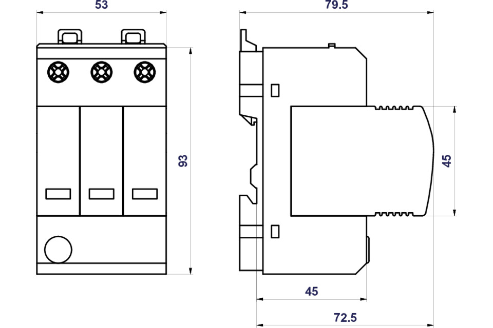 Svodiče impulzních proudů a rázového přepětí typu T1+T2 pro fotovoltaické (PV) systémy. Výrobky jsou koncipované v zapojení typu Y, které je odolné vůči zemnímu spojení pracovních vodičů. Jednotlivé varistorové sekce zapojené mezi svorky L+, L- a PE jsou opatřeny interními odpojovači, které jsou aktivovány při poruše (přehřátí) varistorů a jsou schopny přerušit DC proud. Speciální konstrukce vnitřního odpojovače dovoluje instalaci bez předřazeného předjištění. Instalují se na DC straně v PV aplikacích s vnějším LPS, kde není dodržena dostatečná vzdálenost „s“. Jsou vhodné pro hladinu LPL III nebo IV. Zajišťují vyrovnávání potenciálů plusových a mínusových sběrnic PV systémů a likvidaci transientních přepětí vznikajících při atmosférických výbojích (včetně přímého úderu blesku do PV systému) nebo spínacích procesech. Označení M specifikuje konstrukční provedení s výměnným modulem. Označení DS specifikuje provedení s dálkovou signalizací. Instaluje se dle norem: ČSN EN 62305 ed. 2, ČSN CLC/TS 50539–12, ČSN 33 2000-7-712 ed. 2.