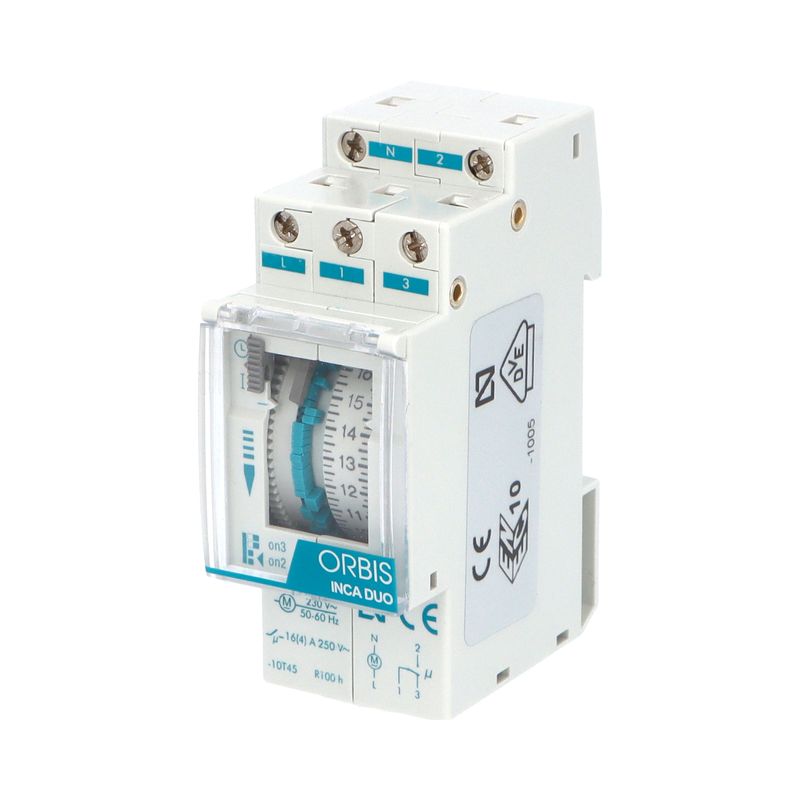 Hodiny spínací ORBIS INCA DUO QRD, analog., denní, 2mod., se zálohou, šedé, na DIN lištu *1000813 eleman