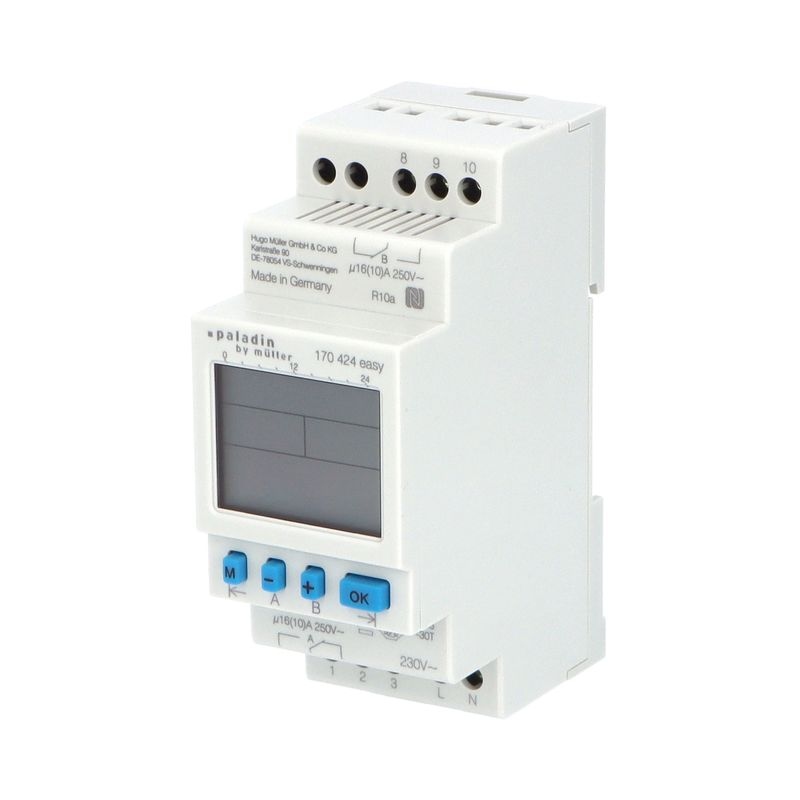 Hodiny spínací PALADIN 170424easy, dig., ASTRONOM., 2kan., 2mod., se zálohou, šedé, na DIN *1081303 eleman