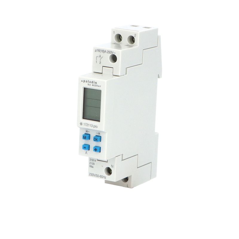 Hodiny spínací PALADIN 172113pro, dig., ASTRONOM., 1kan., 1mod., se zálohou, šedé, na DIN *1008126 eleman