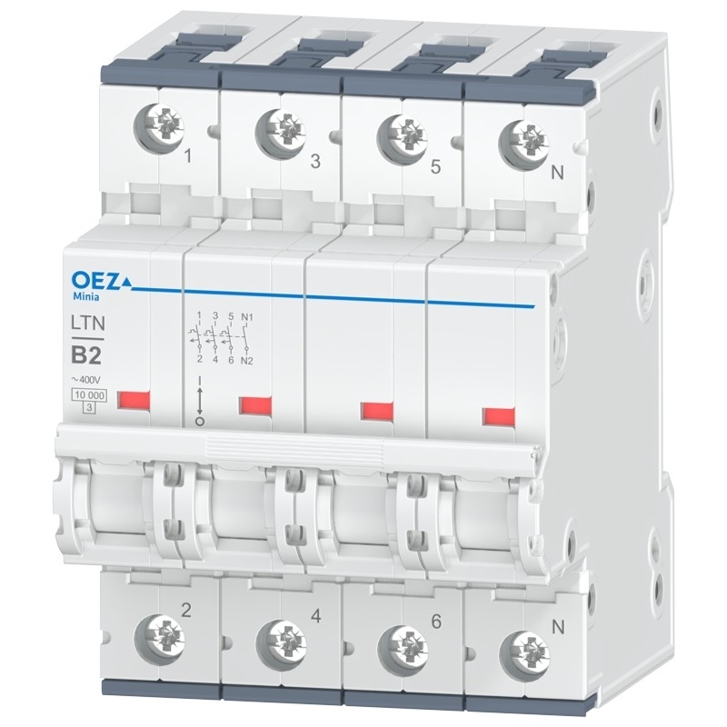 Jistič LTN-2B-3N In 2 A, Ue AC 230/400 V / DC 216 V, charakteristika B, 3+N-pól, Icn 10 kA OEZ:46644