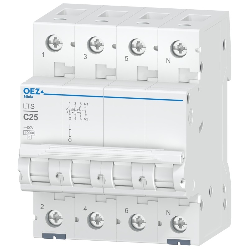 Jistič LTS-25C-3N In 25 A, Ue AC 230/400 V / DC 180 V, charakteristika C, 3+N-pól, Icn 10 kA OEZ:42148