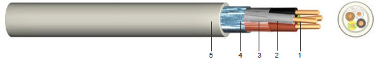 5 ..... Vnější plášť z polyvinylchloridu (PVC) šedý, možnost jiné barvy pláště dle specifikace