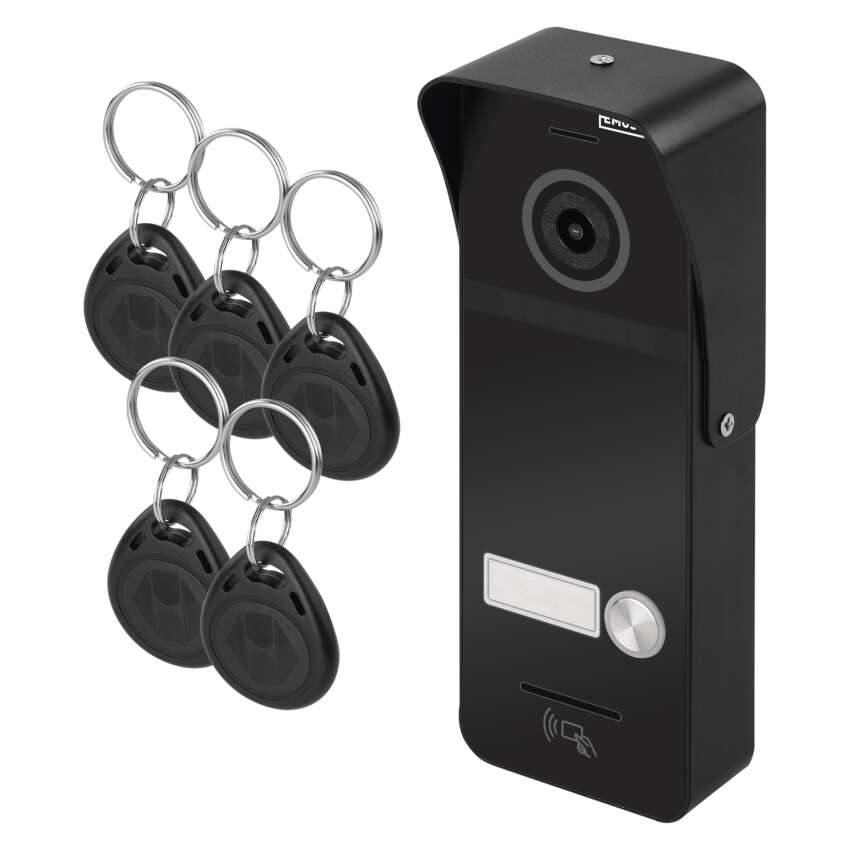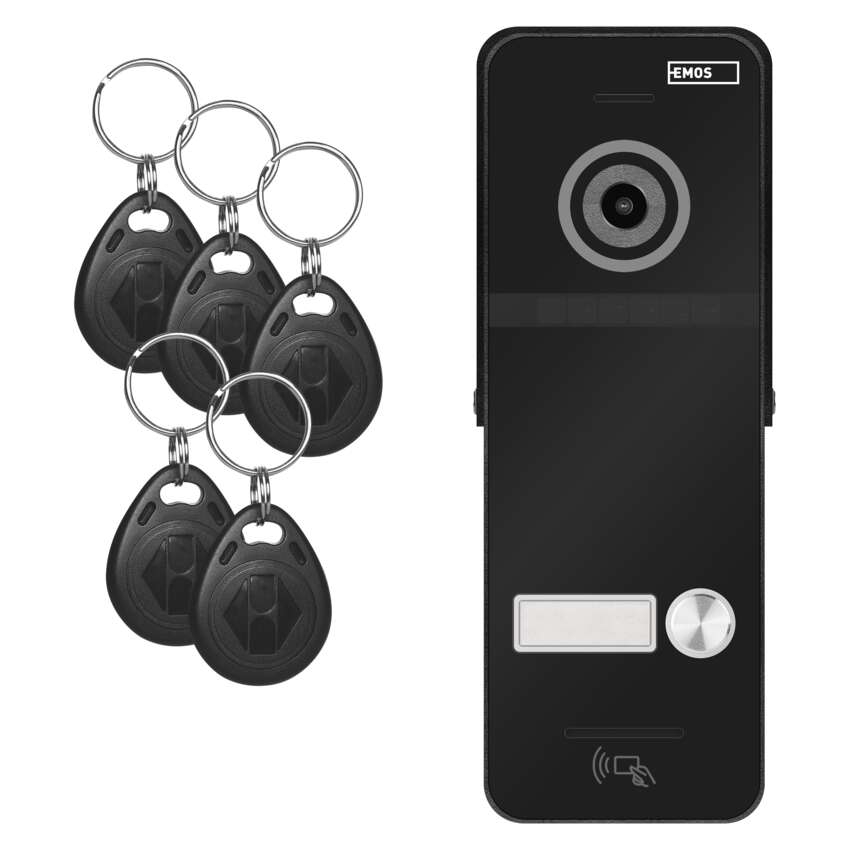 Kamerová jednotka pro monitory a videotelefony EMOS EM-10AHD == antivandal provedení kamerové jednotky: ano|aplikace pro vzdálenou správu: bez aplikace|barevné snímání: ano|funkce zabezpečení: detekce pohybu s funkcí alarmu|instalace: povrchová|krytí: IP44|napájení: z monitoru|ovládání: videotelefon|ovládání dveřního zámku: ano|počet tlačítek kamerové jednotky: 1|počet vodičů (monitor/zámek/napájení): 4/2/0|požadovaná kabeláž: FTP nebo SYKFY 5 × 2 × 0,5|připojení: bez připojení|přísvit kamery: ano, do 150 cm|prodejní obal: 1 ks, krabice|produkt: kamerová jednotka s RFID|rozměr kamerové jednotky: 131 × 47 × 18 mm|složení sady: neuvádí se|snímací prvek kamery: 1/2,7" CMOS 2.0 MP, AHD + IR CUT|úhel záběru kamery: 160°