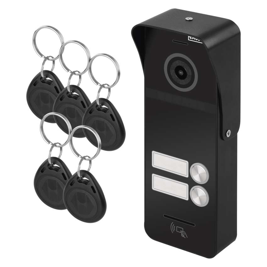 Kamerová jednotka pro monitory a videotelefony EMOS EM-10AHD == antivandal provedení kamerové jednotky: ano|aplikace pro vzdálenou správu: bez aplikace|barevné snímání: ano|funkce zabezpečení: detekce pohybu s funkcí alarmu|instalace: povrchová|krytí: IP44|napájení: z monitoru|ovládání: videotelefon|ovládání dveřního zámku: ano|počet tlačítek kamerové jednotky: 2|počet vodičů (monitor/zámek/napájení): 2× 4/2/0|požadovaná kabeláž: FTP nebo SYKFY 5 × 2 × 0,5|připojení: bez připojení|přísvit kamery: ano, do 150 cm|prodejní obal: 1 ks, krabice|produkt: kamerová jednotka s RFID|rozměr kamerové jednotky: 131 × 47 × 18 mm|složení sady: neuvádí se|snímací prvek kamery: 1/2,7" CMOS 2.0 MP, AHD + IR CUT|úhel záběru kamery: 160°