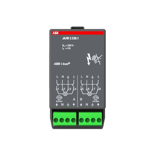 Modul žaluziového akčního členu, 2násobný, 230 V AC; JA/M2.230.1 Vhodné pro designy z vypínačových řad ABB : KNX Objednací číslo : 2CDG110003R0011