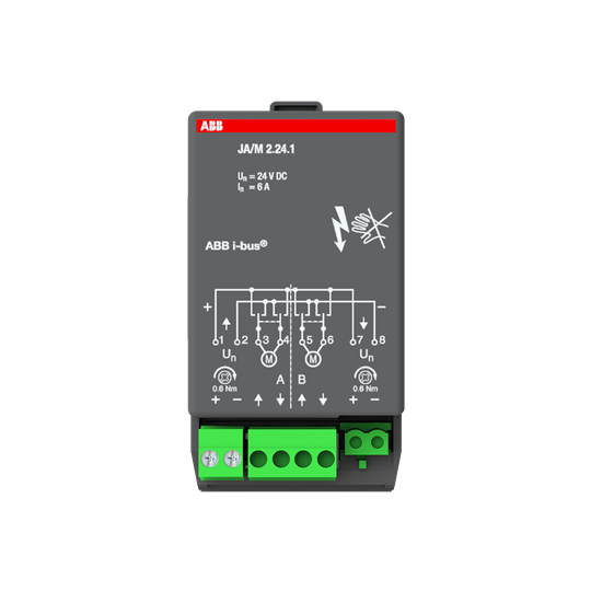 Modul žaluziového akčního členu, 2násobný, 24 V DC; JA/M2.24.1 Vhodné pro designy z vypínačových řad ABB : KNX Objednací číslo : 2CDG110004R0011
