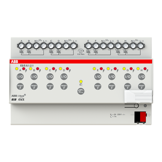 Řadový elektronický spínací akční člen 8násobný, 1 A; ES/S8.1.2.1 Vhodné pro designy z vypínačových řad ABB : KNX Objednací číslo : 2CDG110059R0011