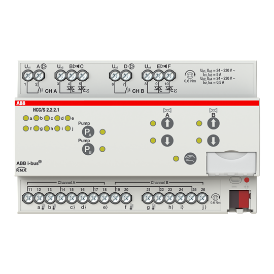 Řadový regulátor otopné/chladicí soustavy, 2násobný, 3st., man. ovládání; HCC/S 2.2.2.1 Vhodné pro designy z vypínačových řad ABB : KNX Objednací číslo : 2CDG110221R0011