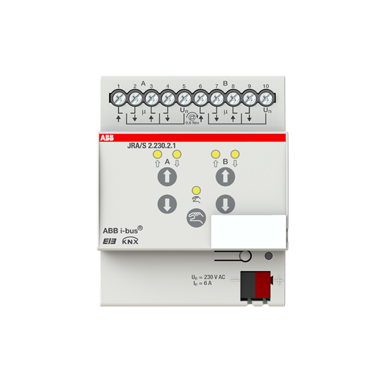 Řadový žaluziový akční člen 2násobný, 230 V AC, manuální ovládání; JRA/S2.230.2.1 Vhodné pro designy z vypínačových řad ABB : KNX Objednací číslo : 2CDG110120R0011