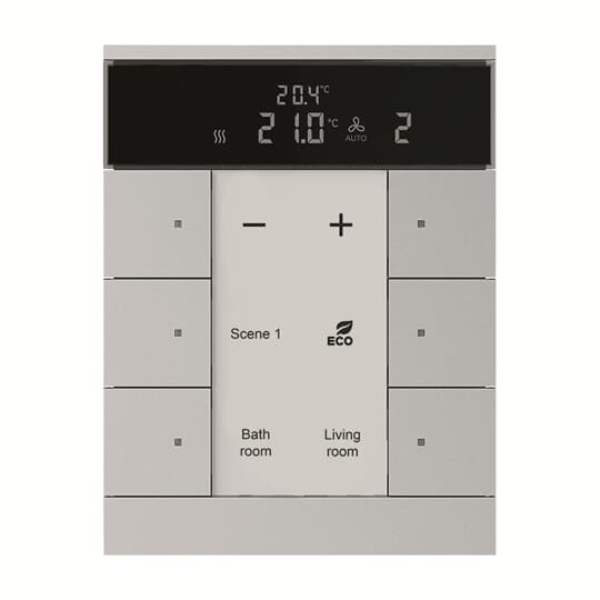 Tenton prvek ovládací 6násobný s termostatem; hliníková stříbrná; SBS/U6.0.1-83 Vhodné pro designy z vypínačových řad ABB : KNX Objednací číslo : 2CKA006330A0038
