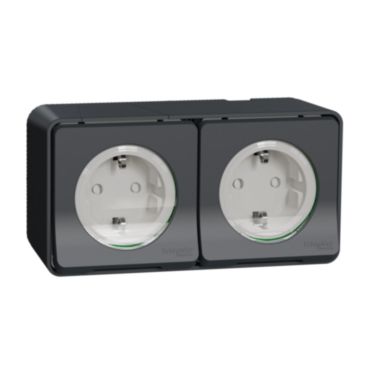 Kompletní Zásuvka dvojitá 16A SCHUKO, clonky, bezšroubová, IP55, antracit *MUR36029