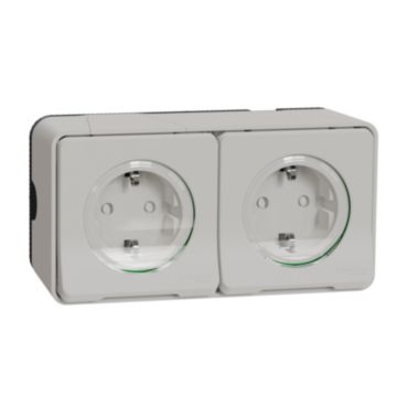 Kompletní Zásuvka dvojitá 16A SCHUKO, clonky, bezšroubová, IP55, bílá *MUR39035