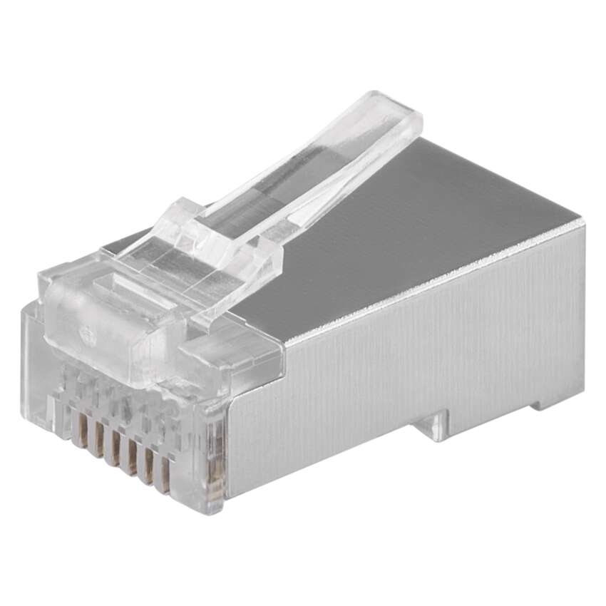 Konektor RJ45 pro FTP kabel (drát) CAT5E == kategorie: CAT5E|materiál konektorů: PE/50 µ zlata - 70 µ nikl|maximální provozní vlhkost: 93 %|min. životnost: 1 000 cyklů zapojení/odpojení|počet konektorů: neuvádí se|použití: pevný drát|prodejní obal: 20 ks, PVC sáček|provozní teplota: -10–60 °C|rozměr: 22 × 12 × 10 mm|skladovací teplota: -40–70 °C|stínění: ano|typ: konektor RJ45 8p8c|určeno pro kabel: FTP, SFTP, F/UTP