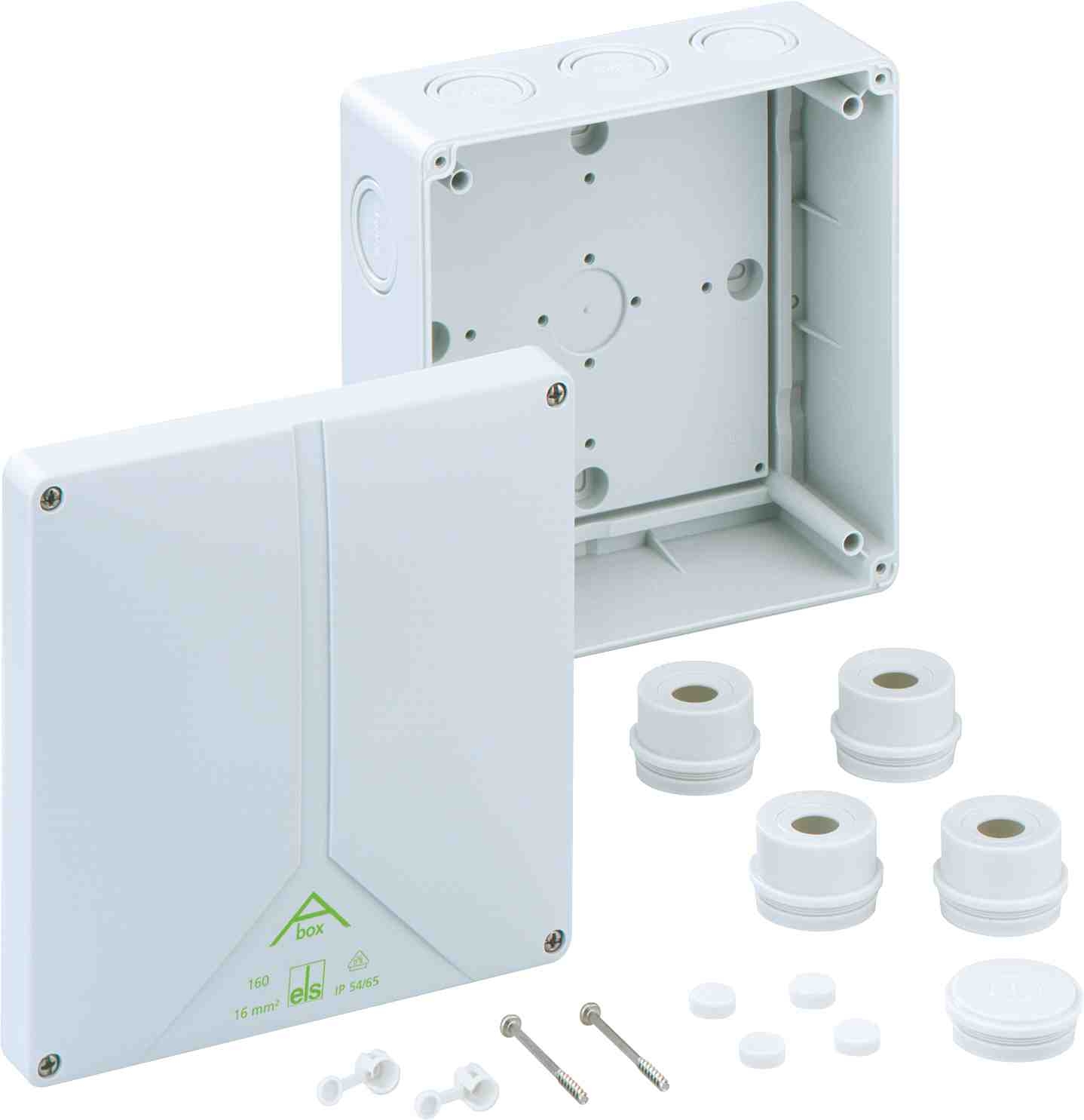 Rozbočovací krabice, se stupněm krytí IP54/IP65, Jmenovitý průřez 16 mm?, Ui=690V AC, Certifikováno VDE (DIN EN 60670-1/-22 (VDE 0606-1/-22)), Vyrážecí membrány, M20/M25/M32/M40, (2 Zpětné, 10 bočně), Vnitřní místa pro připevnění, pro standardní instalace ve vnitřním prostoru, šedá, bez svorek Rozměry: 180 x 180 x 91 mm Přiložené příslušenství: 4 Vývodka IP54 M40 Rozsah těsnění 17 - 30 mm, 1 Zaslepovací zátky M40, 1 Plombovací souprava