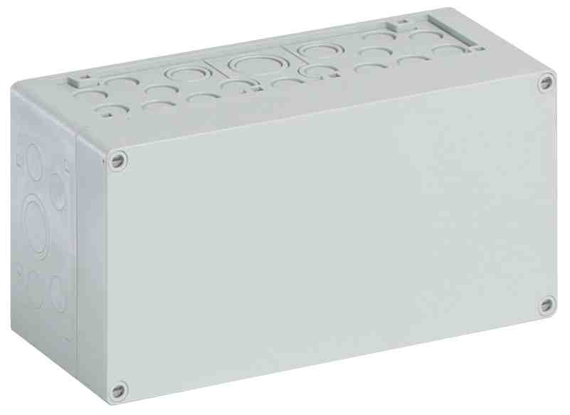 Prázdná skříň, se stupněm krytí IP65, polykarbonát, Ui=690V AC, Ui=1000V DC, Vnitřní místa pro připevnění, pro instalace v průmyslovém prostředí a chráněném venkovním prostředí, Krabice: polykarbonát, Víko: polykarbonát, zesílený skelnými vlákny, šedá, Vyrážecí membrány, M20/M25/M32/M40, (46 bočně) Rozměry: 300 x 150 x 132 mm Přiložené příslušenství: 10Dvojitá membránová vývodka IP66 M20 Rozsah těsnění 7 - 12 mm, 2 Dvojitá membránová vývodka IP66 M25 Rozsah těsnění 9 - 16 mm, 2 Dvojitá membránová vývodka M32 Rozsah těsnění 14 - 21 mm, 1 Dvojitá membránová vývodka IP66 M40 Rozsah těsnění 19 - 28 mm