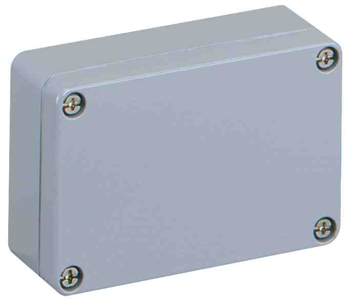 Prázdná skříň, se stupněm krytí IP66, Hliník s práškovým lakováním, Vnitřní místa pro připevnění, pro instalace v průmyslovém prostředí a chráněném venkovním prostředí, Krabice: Hliník s práškovým lakováním, Víko: Hliník s práškovým lakováním, stříbrně šedá, hladké boky Rozměry: 98 x 64 x 34 mm