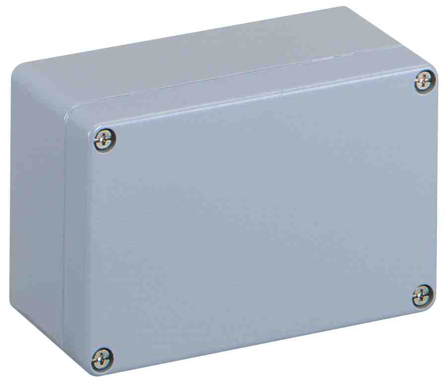 Prázdná skříň, se stupněm krytí IP66, Hliník s práškovým lakováním, Vnitřní místa pro připevnění, pro instalace v průmyslovém prostředí a chráněném venkovním prostředí, Krabice: Hliník s práškovým lakováním, Víko: Hliník s práškovým lakováním, stříbrně šedá, hladké boky Rozměry: 125 x 80 x 57 mm